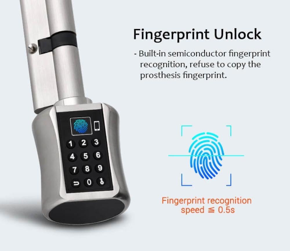 قفل باب ذكي داخلي او خارجي يفتح بالبصمة ويمكن التحكم به عن طريق الجوال باستخدام برنامج Smart Life ويدعم الفتح بالبصمة وكلمة مرور والفتح المباشر من خلال التطبيق.