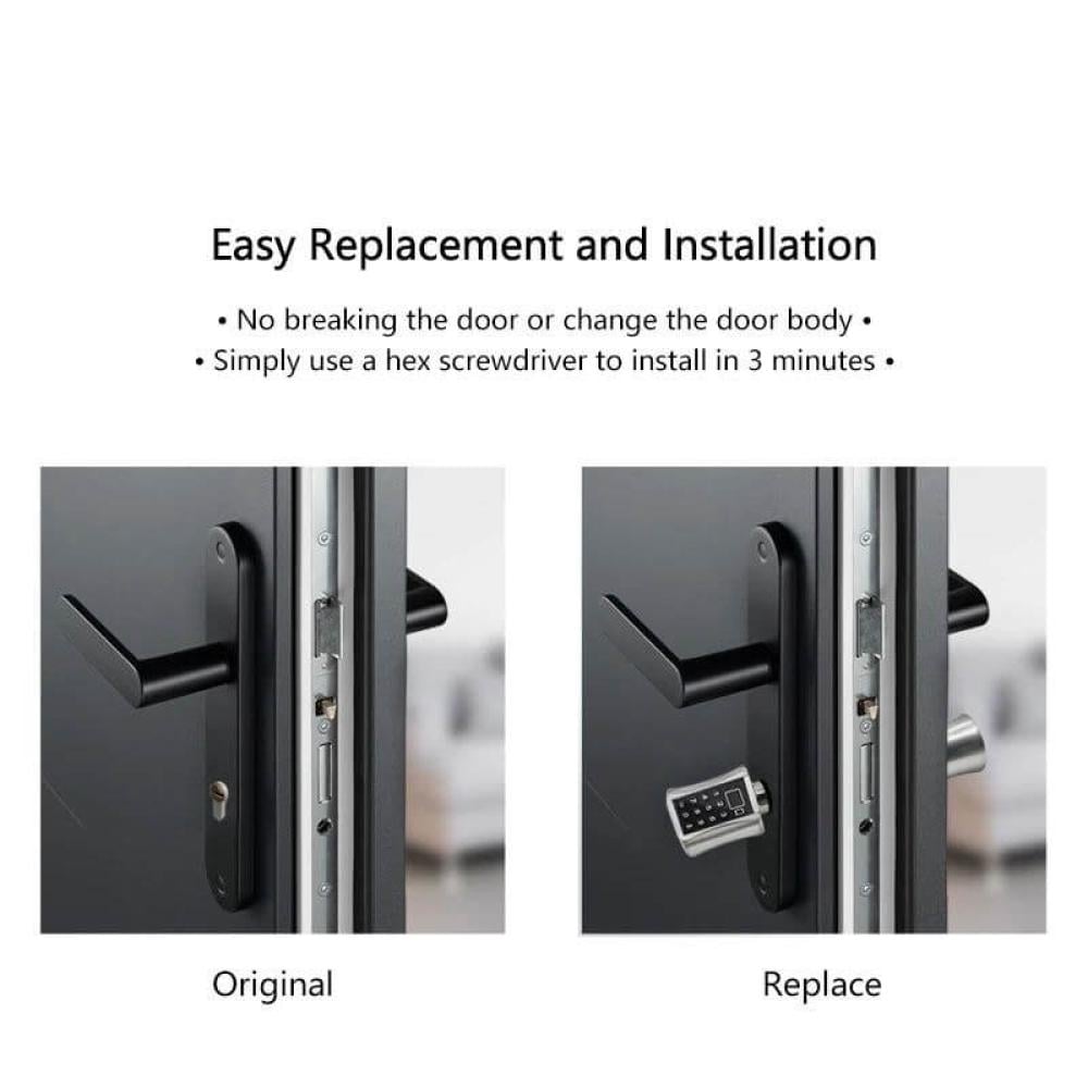 القفل الذكي تركيبه سهل وما تحتاج إلى فني وما ياخذ من وقتك 3 دقايق تفك القلب العادي وتستبدله بالقلب الذكي والأفضل انك تبرمج البصمات قبل تركيبه بالباب حتى يسهل عليك العملية اكثر.